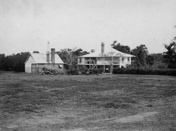 Keywords: StateLibQld 1 159910 Neame's residence on the Macknade Mill property at Ingham, Queensland, ca. 1881.jpg supplied with photograph People are standing on the back verandah of the home Various outbuildings are in the foreground A kitchen garden is visible to the right of the photograph circa 1881 handle 10462/deriv/6523 Item is held by John Oxley Library State Library of Queensland PD-Australia StateLibQld-License Sheds in Australia Houses in Ingham Black and white photographs Verandas on single story Queensland houses Macknade Mill Ingham |