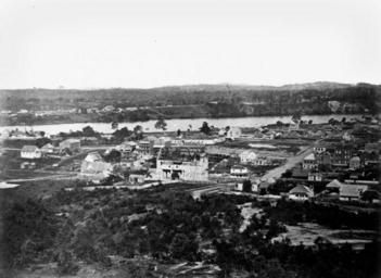 | Keywords: StateLibQld 1 161298 Brisbane in 1862.jpg  en Brisbane in 1862 This view of Brisbane in 1862 shows the area around the old Women's Factory Prison The prison is the building behind the partly completed Normal School Brisbane's present GPO building was erected near the site of the prison On the right of the prison is St Stephen's Church still standing Edward Street can be seen running down the hill Queen and Adelaide Streets can also be clearly seen 1862 handle 10462/deriv/8931 Item is held by John Oxley Library State Library of Queensland PD-Australia StateLibQld-License Brisbane in the 1860s Brisbane River Black and white photographs Views of Brisbane |