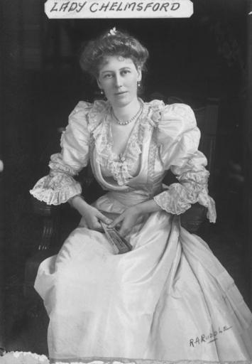 | Keywords: StateLibQld 1 162223 Lady Chelmsford.jpg en Lady Chelmsford wife of Frederick John Napier Thesiger 3rd Baron Chelmsford Governor of Queensland 1905-1909 Governor of New South Wales 1909-1912 and Viceroy of India 1916-1921 Before her marriage in January 1894 Lady Chelmsford was Frances Charlotte Guest eldest daughter of Ivor Bertie First Baron Wimborne and Lady Cornelia Herietta Maria Spencer-Churchill Daughter of the 7th Duke of Marlborough Lord Chelmsford died in April 1933 Lady Chelsford died in September 1957 Lady Chelmsford is wearing a silk dress with lace at the neckline and on the sleeves on her lap she holds a fan ~ 1905 handle 10462/deriv/109999 Item is held by John Oxley Library State Library of Queensland Contributor s R A Ruddle Fortitude Valley PD-Australia StateLibQld-License Black and white photographic portraits of women Female hair fashion 1905 circa Hair fashion in Australia Women's clothing of Australia Black and white photographs Dresses in Australia Jewellery of Australia Women with earrings 1905 portrait photographs |