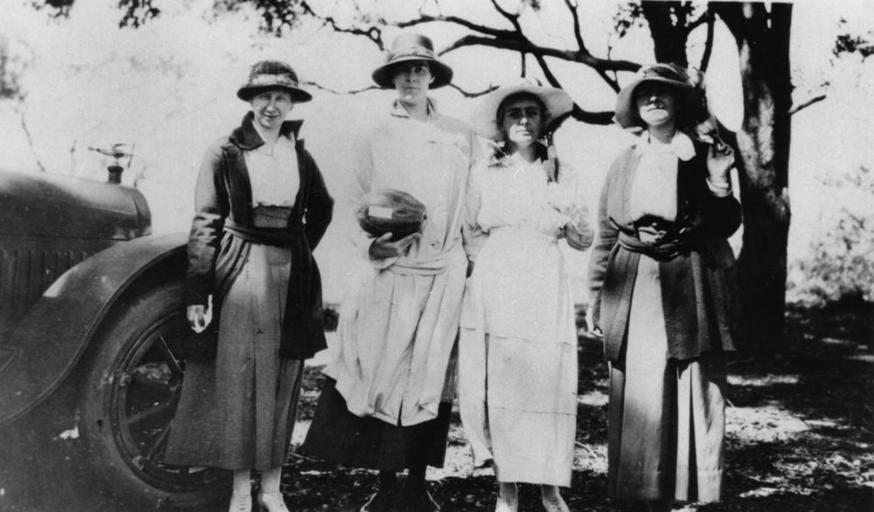 | Keywords: StateLibQld 1 164991 Women of the Campbell Family enjoy a motor car trip to Scarborough, 1919.jpg en Women of the Campbell Family enjoy a motor car trip to Scarborough 1919 The woman second from left is wearing a dust coat and carrying a watermelon The women's hemlines are just above the ankle 1919 handle 10462/deriv/111275 Item is held by John Oxley Library State Library of Queensland PD-Australia StateLibQld-License Portraits of Queensland Women's clothing of Australia Headgear of Australia People with hats Shoes of Australia 1919 in Queensland Black and white photographs |