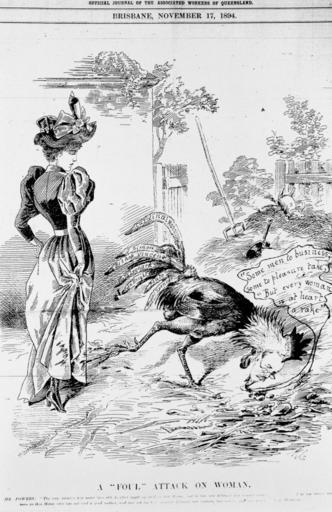 | Keywords: StateLibQld 1 190447 Foul attack on women , (suffragette movement in Queensland).jpg en Foul attack on women suffragette movement in Queensland Celebrating the centenary of women's suffrage in Queensland On 5 January 1905 two years after the formation of the Queensland Women's Electoral League the Electoral Franchise Bill was introduced into the Legislative Assembly to give the women of Queensland the right to vote The Elections Acts Amendment Bill providing the necessary machinery was introduced at the same time Despite some misgivings about abolishing the plural vote and difficulty with postal voting these issues were overcome and the legislation giving the women of Queensland the right to vote was finally passed It was assented to by the Lieutenant-Governor on 26 January 1905 1894-11-17 handle 10462/deriv/113194 Copied and digitised from an image appearing in The Worker official journal of the associated workers of Queensland 17 November 1894 Scott Monte; Contributor s The Worker PD-Australia StateLibQld-License Cartoons of Australia Political cartoons of Australia Politics of Queensland Women's clothing of Australia Voting in Australia 1894 in Queensland Black and white photographs Women's suffrage in Australia |