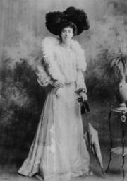 | Keywords: StateLibQld 1 202003 Woman, wearing a large feathered hat and boa, posing for a portrait, 1900-1910.jpg  en Woman wearing a large feathered hat and boa posing for a portrait 1900-1910 Woman poses for a portrait wearing a light coloured long skirt and matching blouse both trimmed with lace Across her shoulders she wears a long feather boa and on her head is a hat adorned with large dark plumage She wears jewellery including rings strings of pearls chain necklaces bracelets and possibly on her left hand a very early wristwatch She is holding a pair of gloves and a closed parasol/umbrella Photograph taken by M H Poulsen art photographer Warwick between 1900 1910 handle 10462/deriv/98699 Item is held by John Oxley Library State Library of Queensland Poulsen M H PD-Australia StateLibQld-License Women's clothing of Australia Headgear of Australia People with hats Females with umbrellas People with feathers People wearing wristwatches Warwick Queensland 1900 in Australia Black and white photographs Feather boas |