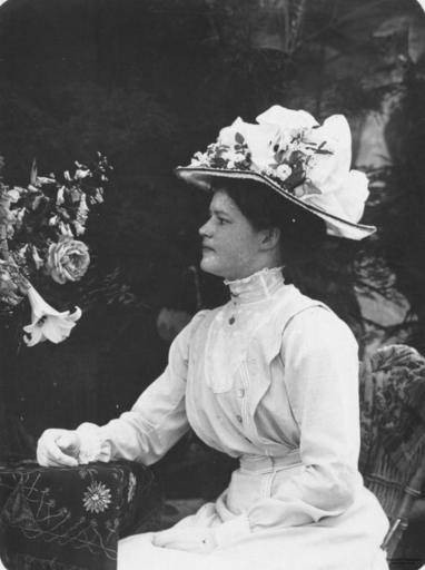 | Keywords: StateLibQld 1 213936 Portrait of a woman in a large hat, 1900-1910.jpg en Portrait of a woman in a large hat 1900-1910 Young woman poses for a portrait wearing a wide-brimmed hat piled high with swathes of fabric and decorated with sprigs of flowers and a butterfly She wears a dress with a high lace collar and light-coloured gloves She is posed in profile looking towards a bunch of flowers including lilies roses and jacaranda flowers between 1900 1910 handle 10462/deriv/137838 Item is held by John Oxley Library State Library of Queensland PD-Australia StateLibQld-License Women's clothing of Australia Headgear of Australia People with hats Flowers of Australia People with gloves in Australia Portraits of Queensland 1900 in Australia Black and white photographs Flower-adorned hats |