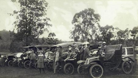 | Keywords: StateLibQld 1 235967 Governor Chelmsford and the Automobile Club, Brisbane, April 1908.jpg en Governor Chelmsford and the Automobile Club Brisbane April 1908 Frederick John Napier Thesiger Baron Chelmsford born August 12 1868 London England died April 1 1933 London was sworn in as Governor of Queensland on 20 November 1905 He had several titles including Viscount Chelmsford and Lord Chelmsford He was the son of a distinguished soldier and grandson of a statesman Lord Chelmsford studied Law and was called to the Bar in 1893 The following year he married Frances Guest the daughter of Lord Wimbourne and they brought their young family with them to Queensland Both Lord and Lady Chelmsford were accomplished musicians he playing violin-cello and she piano They formed chamber music groups at Government House in Brisbane and later in Sydney He left Queensland to become Governor of New South Wales in 1909 and after World War I spent a period as Viceroy of India from 1916-1921 Photograph is part of Governor Chelmsford's private collection A line of beautiful automobiles and their owners are pictured with Governor Chelmsford who is leaning against one of the cars He is wearing a light coloured suit covered by a dark overcoat His hat has a white band around the crown 1908-04-01 handle 10462/deriv/39038 Item is held by John Oxley Library State Library of Queensland PD-Australia StateLibQld-License Vehicles in Australia Men's clothing of Australia Children's clothing of Australia Headgear of Australia People with hats 1908 in Brisbane Black and white photographs |