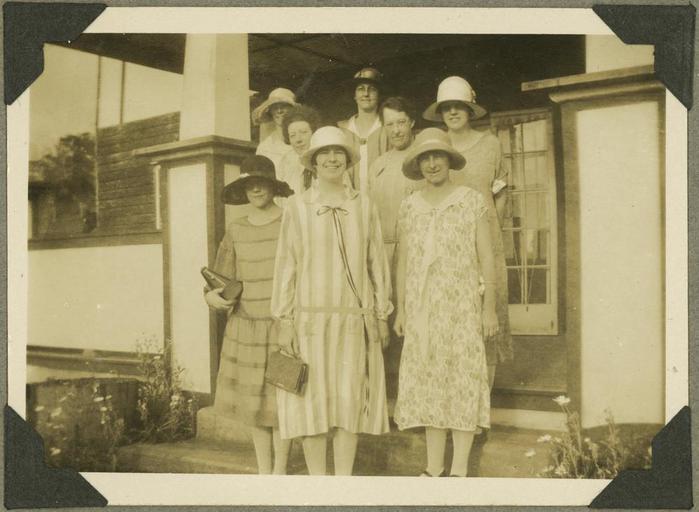 | Keywords: StateLibQld 1 241591 Group of women with fashionable summer clothes from 1926.jpg en Group of women with fashionable summer clothes from 1926 Susan Hodson and friends Staff of St Faith's Anglican School for Girls at Yeppoon Caption on back of photograph reads 'Off for Christmas holidays 1926 ' 1926-12-01 handle 10462/deriv/126400 Item is held by John Oxley Library State Library of Queensland Contributor s Newby PD-Australia StateLibQld-License People with hats 1926 in Queensland 19261201 Yeppoon Christmas in Australia 1926 Headgear of Australia Educators from Australia Women's clothing of Australia Black and white photographs Christmas 1926 Photographs taken on 1926-12-01 Yeppoon Fashion in 1926 St Faith's Anglican Girls School Yeppoon |