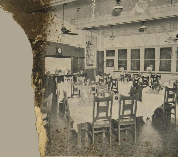 | Keywords: StateLibQld 1 246569 Dining room in Vallely's Hotel Australian, Brisbane, ca. 1910.jpg en Dining room in Vallely's Hotel Australian Brisbane ca 1910 Vallely's Hotel Australian on the corner of Queen and Albert Streets Brisbane was etablished in 1869 The proprietor was Peter Vallely The dining room has a servery into the room White table cloths cover the wooden dining tables High backed wooden dining chairs complete the settings circa 1910 handle 10462/deriv/35654 Item is held by John Oxley Library State Library of Queensland PD-Australia StateLibQld-License Furniture in Australia Dining rooms in Queensland Hotel Australian Brisbane 1910 in Australia Black and white photographs |