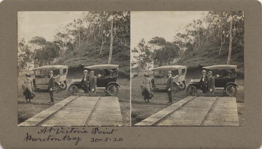 | Keywords: StateLibQld 1 251701 Day out at Victoria Point, 1920.jpg en Day out at Victoria Point 1920 Two motor vehicles and their occupants are pictured at Victoria Point A timber structure with rail lines is in the foreground Victoria Point is on Moreton Bay in the Redland Shire 1920-05-30 handle 10462/deriv/120644 Item is held by John Oxley Library State Library of Queensland Shale John F PD-Australia StateLibQld-License Vehicles in Australia Railway lines in Australia 1920 in Australia Men's clothing of Australia Women's clothing of Australia Stereo cards of Australia Victoria Point Queensland Black and white photographs |