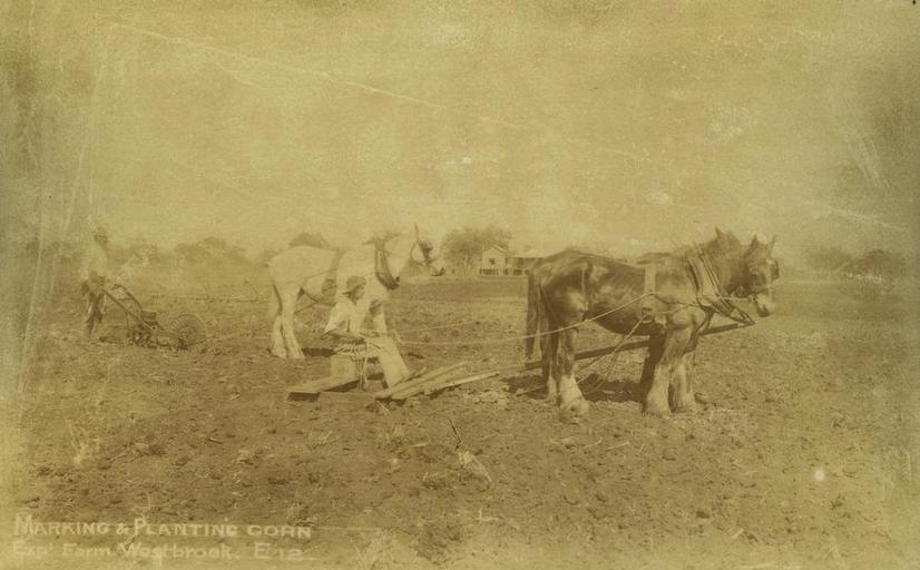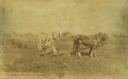 Keywords: StateLibQld 1 254991 Planting the corn fields at Westbrook Farm, Toowoomba, ca. 1899.jpg en Planting the corn fields at Westbrook Farm Toowoomba ca 1899 <br /> Two men are marking and planting the field with corn The horse in front is dragging the marking tray and the horse behind is dragging the planting machine circa 1899 handle 10462/deriv/40478 Item is held by John Oxley Library State Library of Queensland PD-Australia StateLibQld-License Horses of Toowoomba Farmers from Australia Agriculture in Toowoomba 1899 in Queensland 19th-century photographs of Queensland Sowing Agriculture with horses |