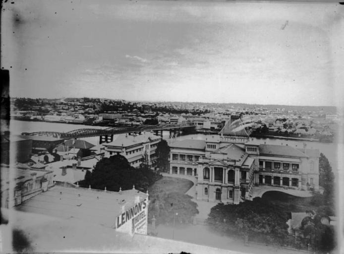| Keywords: StateLibQld 1 70019 View of Brisbane with the Supreme Court building in the forefront, ca. 1902.jpg en View of Brisbane with the Supreme Court building in the forefront ca 1902 Looking south from the Ann Street Power Station towards the Supreme Court building across the road from Lennon's Hotel and on towards the Victoria Bridge In the far distance is South Brisbane on the bank of the Brisbane River The Supreme Court building was designed by F D G Stanley the Colonial Architect for Queensland until 1881 It was built during the 1870s by the Petrie Constuction Company circa 1902 handle 10462/deriv/85642 Item is held by John Oxley Library State Library of Queensland PD-Australia StateLibQld-License Court houses in Queensland Bridges in Brisbane Black and white photographs Law Courts Brisbane First Works by Francis Drummond Greville Stanley 1902 in Brisbane Views of Brisbane |