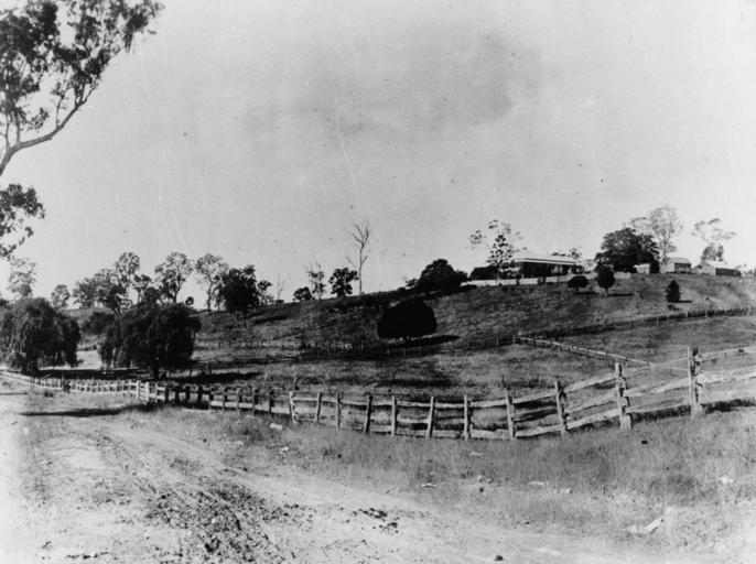 Keywords: StateLibQld 1 70647 James Brimblecombe's residence 'Fairview' at Brookfield, Brisbane, 1920s.jpg supplied with photograph Fairview was the second home of the Brimblecombe family who were pioneers of the Brookfield area James Stephens Brimblecombe arrived in Brisbane in April 1869 from the Hunter River district of New South Wales He obtained 71 acres of scrub land on Gold Creek and within a few months had built a small home of hardwood slabs which was named 'Bannerfield' His wife Lucinda and children arrived shortly after Fairview was built in 1874 on Rafting Ground Road being closer to the local school and church For a time a room off the verandah at Fairview operated as the local post office The Brimblecombes prospered at dairying and agriculture selling butter and eggs James died in 1915 and his wife Lucinda in 1912 Brookfield regarded as one of Brisbane's later developing suburbs actually was one of the earliest areas settled The fertile country in the district was farmed as early as 1850 with dairying and small crops being the main occupation By the early 1870s population growth warranted the establishment of the first primary school in the area Timber getting was also an early industry and there are the remains of a number of old gold mines in the district between 1920 1925 handle 10462/deriv/85247 Item is held by John Oxley Library State Library of Queensland PD-Australia StateLibQld-License Countryside in Australia Fences in Australia 1920 in Brisbane New South Wales Black and white photographs Gold Creek Queensland