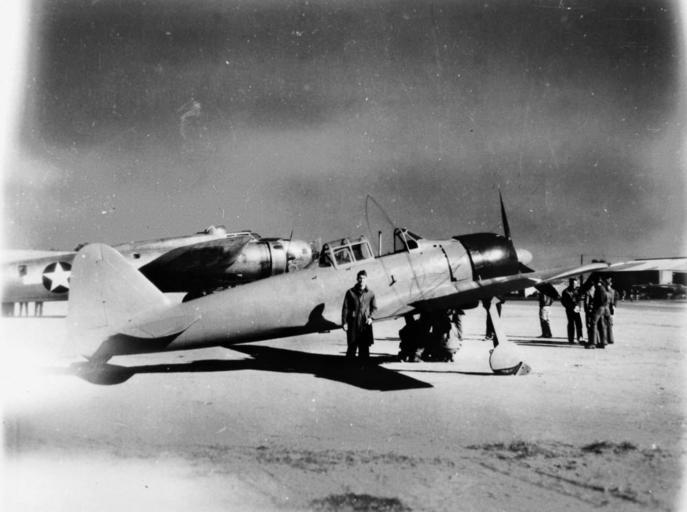 | Keywords: StateLibQld 1 85424 Rebuilt Zero airoplane at Eagle Farm, Brisbane, August 1943.jpg en Rebuilt Zero airoplane at Eagle Farm Brisbane August 1943 Airmen are gathered around the plane on the airfield and another plane is visible behind the Zero Zero planes were built by Mitsubishi for the Japanese Naval aviators to fly during World War II 1943-08-05 handle 10462/deriv/61765 Item is held by John Oxley Library State Library of Queensland PD-Australia StateLibQld-License Aviation in Queensland Eagle Farm Airport Hangars in Australia Military uniforms of Australia World War II home front in Brisbane 1943 in Australia Black and white photographs Mitsubishi A6M Zero |