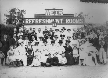 | Keywords: StateLibQld 1 87204 Group portrait taken in front of the kiosk at the weir, Charters Towers, 1910.jpg en Group portrait taken in front of the kiosk at the weir Charters Towers 1910 <br /> Water Board employees and their families are pictured at their picnic day held at the weir on the Burdekin River at Charters Towers 1910 handle 10462/deriv/63004 Item is held by John Oxley Library State Library of Queensland PD-Australia StateLibQld-License Women's clothing of Australia Men's clothing of Australia Children's clothing of Australia Headgear of Australia People with hats History of Charters Towers Group portraits in Australia 1910 in Queensland Black and white photographs Kiosks in Queensland |