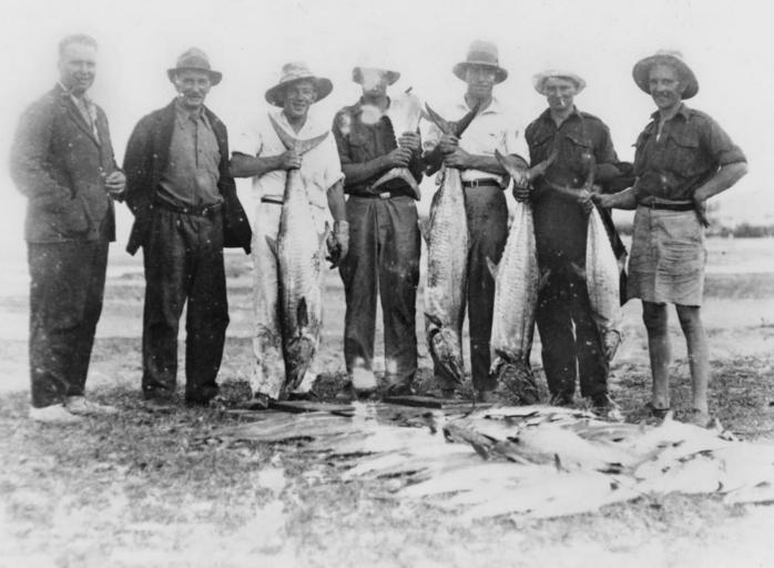 | Keywords: StateLibQld 1 88396 Fishing party displaying their large catch of Spanish Mackerel, Bowen, ca. 1928.jpg supplied with photograph circa 1928 handle 10462/deriv/64158 Item is held by John Oxley Library State Library of Queensland PD-Australia StateLibQld-License Fishing in Australia Fish of Australia Unidentified Scomberomorus Groups of people in Australia Bowen Queensland Black and white photographs | ||||