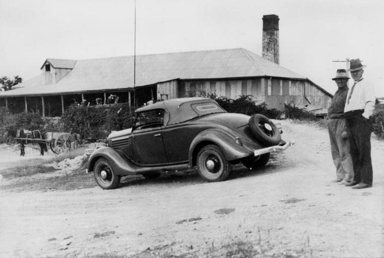 | Keywords: StateLibQld 1 91132 Venus Crushing Works at Charters Towers, ca. 1935.jpg supplied with photograph The car in the photograph is a 1935 Ford V8 roadster powered by an 85hp 'flathead' V8 engine The car is set up with a large luggage compartment rather than having a 'dickey seat' in the rear compartment as was popular with many private owners circa 1935 handle 10462/deriv/65721 Item is held by John Oxley Library State Library of Queensland PD-Australia StateLibQld-License Vehicles in Australia Ford V8 People of Charters Towers Mines in Charters Towers Black and white photographs |