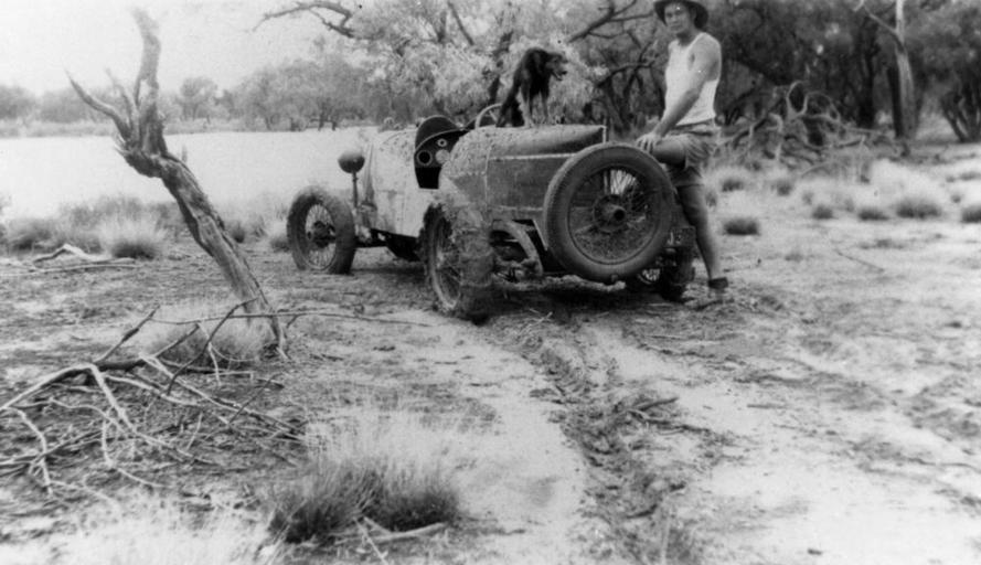 | Keywords: StateLibQld 1 95628 D.M Bryce with his Alvis 12-50 racing car in the mud, 1936.jpg en D M Bryce with his Alvis 12/50 racing car in the mud 1936 D M Bryce with his dog and his pale blue and red Alvis racing car purchased from L F Bode in 1936 The Alvis is a 12/50 model from 1924/25 with an aluminium racing body The 12/50 was powered by a 1500cc four cylinder overhead valve engine developing 50 brake horsepower and was known for it's brisk performance and longevity The British Alvis was very successful in racing in the 1920's both at home and in Australia In this photograph the car is far from the race track on the banks of flooded Bluebush Creek at Colston Shed in the Winton district It is fitted with chains on the rear wheels to provide better traction in the soft and slippery mud taking advantage of it's light weight to avoid bogging down circa 1936 handle 10462/deriv/73006 Item is held by John Oxley Library State Library of Queensland PD-Australia StateLibQld-License Vehicles in Australia Floods in Queensland Rivers of Queensland 1936 in Australia Black and white photographs Alvis 12/50 Vehicles in mud |