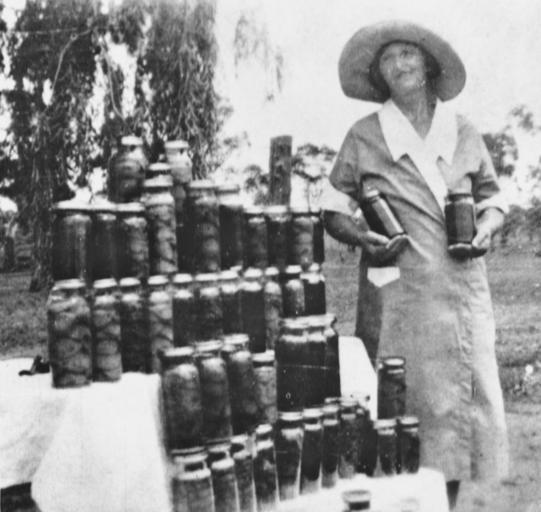 | Keywords: StateLibQld 2 113488 Display of preserved fruit, Talwood, 1933.jpg  supplied with photograph Talwood is in the Goondiwindi district and Applethorpe is on the Granite Belt so the fruit was freighted more than 200 kms 1933 handle 10462/deriv/137696 Copied and digitised from an image appearing in the Queenslander 06 April 1933 p 29 Contributor s Queenslander Brisbane Qld 1866-1939 PD-Australia StateLibQld-License Women's clothing of Australia Black and white photographs 1933 in Australia Canned fruit Images from The Queenslander Mason jars |