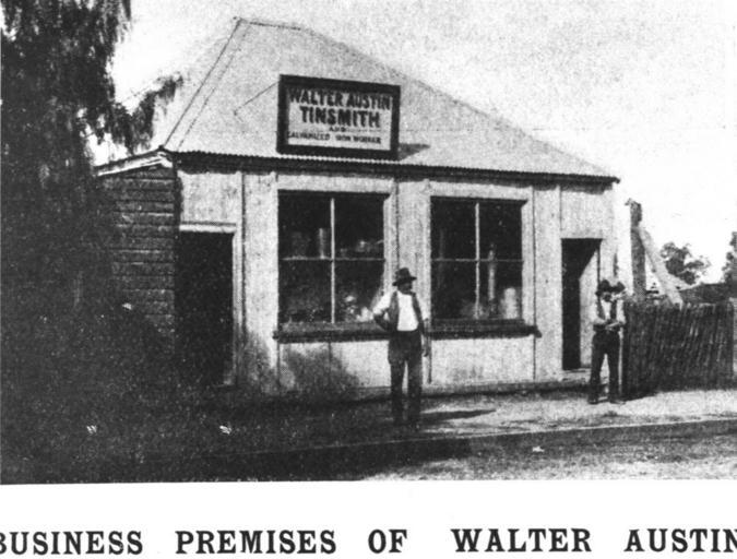 | Keywords: StateLibQld 2 14758 Walter Austin outside his tinsmithing business in St George, Queensland.jpg en Walter Austin outside his tinsmithing business in St George Queensland Business sign reads 'W Austin tinsmith and galvanized iron worker' 1904 handle 10462/deriv/146229 Item is held by John Oxley Library State Library of Queensland PD-Australia StateLibQld-License Men's clothing of Australia Black and white photographs St George Queensland Shops in Queensland 1904 in Australia Signs | ||||
