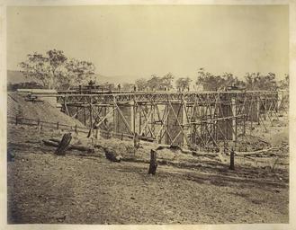 Keywords: StateLibQld 2 234304 Mineral Creek Bridge under construction, 1882.jpg en Mineral Creek Bridge under construction 1882 Railway bridge under construction on the Stanthorpe Extension The bridge was 70 feet in height and comprised one 100 foot and four 50 foot spans The contractor to build the bridge was Mr John Hutcheon of Dragon Street Warwick The columns were constructed out of heavy masonry net in cement concrete foundations and filled in with the same material 1882 handle 10462/deriv/37515 Item is held by John Oxley Library State Library of Queensland PD-Australia StateLibQld-License Rail transport staff from Australia Railway bridges in Queensland Black and white photographs Railway lines in Australia Workers in Australia Pylons in Australia 1882 in Queensland |