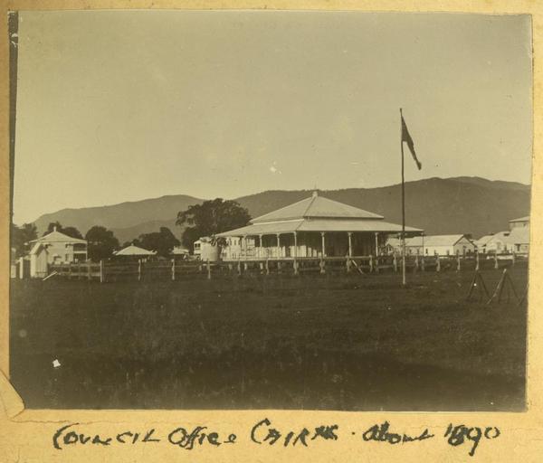 | Keywords: StateLibQld 2 235520 Council offices of Cairns, 1890.jpg en Council offices of Cairns 1890 1890 handle 10462/deriv/39687 Item is held by John Oxley Library State Library of Queensland PD-Australia StateLibQld-License Black and white photographs Flagpoles in Australia 1890 in Queensland Buildings in Cairns |