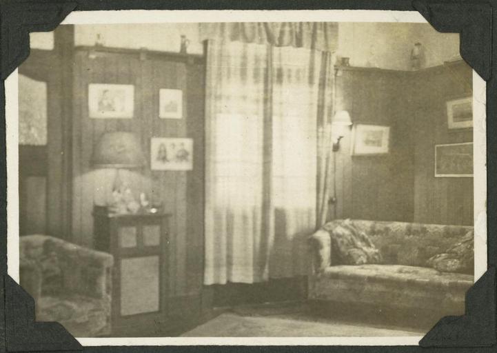 Keywords: StateLibQld 2 242252 Interior of a lounge room in a Queensland home, 1937.jpg en Interior of a lounge room in a Queensland home 1937 Inscription under photograph reads 'Bryn-Cefn' probably a residence in Ayr north Queensland The furnishings in the living room include a three-seater sofa uphostered in a woven floral tapestry fabric with an accompanying high backed arm chair in the popular 'tub'style An upright radiogramme in the centre of the photograph has a table lamp on it and matching lampshade The walls of the living room have a wood-panelled bottom section and a picture rail Behind the sofa is a smaller wall-mounted reading lamp The walls are decorated with photographs and prints 1937 handle 10462/deriv/123619 Item is held by John Oxley Library State Library of Queensland PD-Australia StateLibQld-License Building interiors in Queensland Black and white photographs Living rooms in Australia Couches in Australia 1937 in Australia Ayr Queensland