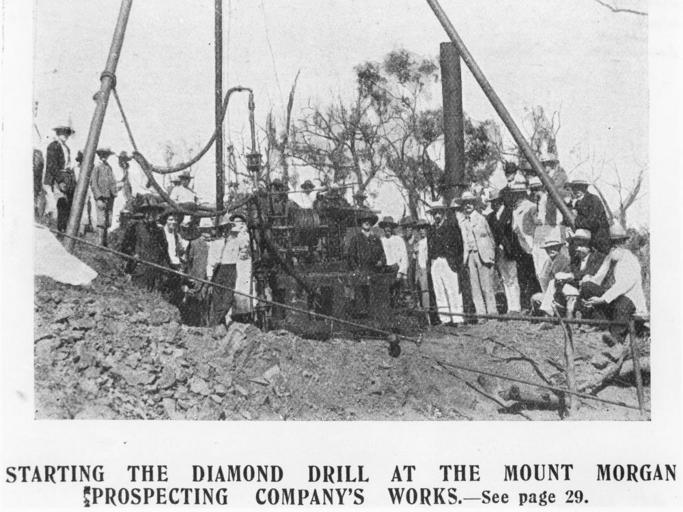 | Keywords: StateLibQld 2 292091 Starting the diamond drill at the Mount Morgan Prospecting Company's Works, Mt. Morgan, 1908.jpg en Starting the diamond drill at the Mount Morgan Prospecting Company's Works Mt Morgan 1908 Group of people visiting the site where the diamond drilling is to commence 1908 handle 10462/deriv/149950 Item is held by John Oxley Library State Library of Queensland Contributor s Queenslander Brisbane Qld 1866-1939 PD-Australia StateLibQld-License Mining machines in Australia Men's clothing of Australia Black and white photographs Gold mines in Queensland Drilling machines Mines in Mount Morgan 1908 in Queensland |