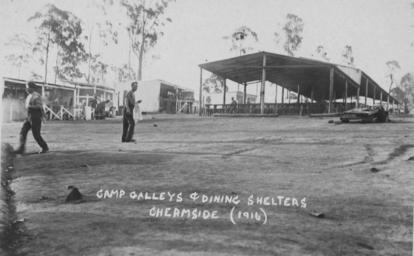 | Keywords: StateLibQld 2 296659 Chermside Army Camp galleys and dining shelters, 1916.jpg en Chermside Army Camp galleys and dining shelters 1916 1916 handle 10462/deriv/193865 Item is held by John Oxley Library State Library of Queensland Contributor s Ktichener Studio PD-Australia StateLibQld-License Military buildings in Australia Military history of Australia Black and white photographs Barracks in Australia Chermside Queensland 1916 in Brisbane Australian Army Government buildings in Brisbane Wars |