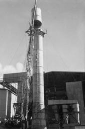 | Keywords: StateLibQld 2 297539 Top of the smoke stack being placed in position, Mount Isa, 1954.jpg supplied with photograph 1954 handle 10462/deriv/150969 Item is held by John Oxley Library State Library of Queensland Waldegrave H B PD-Australia StateLibQld-License Building construction in Australia Black and white photographs Power plants in Queensland Chimneys in Queensland Construction equipment Mount Isa Queensland Cranes in Australia 1954 in Australia | ||||