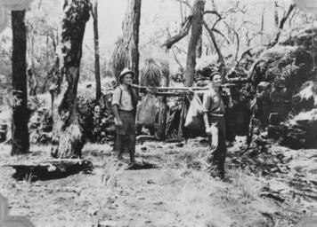 Keywords: StateLibQld 2 394301 Two young men carrying tucker bags in Bunya Mountains, 1922.jpg en Two young men carrying tucker bags in Bunya Mountains 1922 The Bunya Mountains are a distinctive set of peaks forming an isolated section of the Great Dividing Range in southern Queensland The mountain range forms the northern edge of the Darling Downs near Bell and Dalby The mountains are south of Kingaroy and just to the south west of Nanango The Bunya Mountains are the remains of a shield volcano which was built from numerous basalt lava flows about 23-24 million years ago 1922 handle 10462/deriv/192773 Item is held by John Oxley Library State Library of Queensland Queale Alan PD-Australia StateLibQld-License Bunya Mountains National Park Men's clothing of Australia Black and white photographs 1922 in Queensland Men of Australia Nature reserves in Australia |