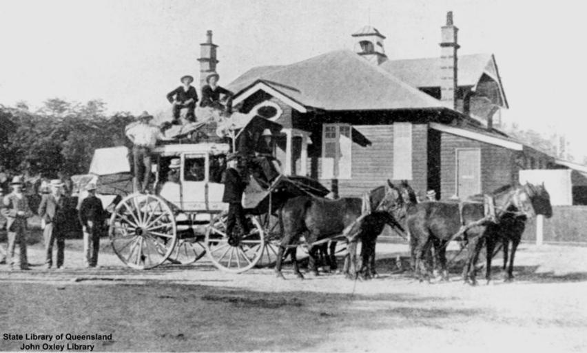 MAKE A MEME View Large Image ...Qld 2 80863 Horsedrawn coach Charleville, 1909.jpg en Horsedrawn coach Charleville 1909 Travelling horsedrawn coach with passengers and drivers at Charleville A low set timber dwelling with gabled roof decorative timber fretwork and brick ...