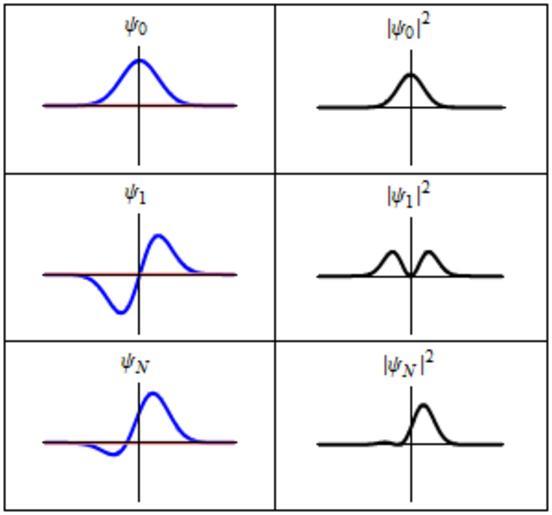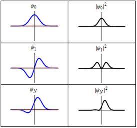 Keywords: StationaryStatesAnimation.gif en Three wavefunction solutions to the Time-Dependent Schrödinger equation for a harmonic oscillator Left The real part blue and imaginary part red of the wavefunction Right The probability of finding the particle at a certain position The top two rows are the lowest two energy eigenstates and the bottom is the superposition state <math>\psi_N \psi_0+\psi_1 /\sqrt 2 </math> which is not an energy eigenstate The right column illustrates why energy eigenstates are also called stationary states Thus in every quantum stae there are certain preferred positions of maximum probability own Sbyrnes321 2011-03-20 <pre> Source code written in Mathematica 6 0 by Steve Byrnes Feb 2011 This source code is public domain Shows classical and quantum trajectory animations for a harmonic potential Assume m w hbar 1 ClearAll Global` Wavefunctions of the energy eigenstates psin_ x_ 2 n n -1/2 Pi -1/4 Exp-x 2/2 HermiteHn x; energyn_ n + 1/2; psitn_ x_ t_ psin x Exp-I energyn t; A non-stationary state SeedRandom1; psinonstationaryx_ t_ psit0 x t+psit1 x t /Sqrt2; Put all the plots together SetOptionsPlot PlotRange -> -1 1 Ticks -> None PlotStyle -> DirectiveThick Blue DirectiveThick Pink ; MakeFramet_ GraphicsGrid Plot Repsit0 x t Impsit0 x t x -5 5 PlotLabel -> Subscript\Psi 0 PlotAbspsit0 x t 2 x -5 5 PlotStyle -> DirectiveThick Black PlotLabel -> TraditionalFormAbsSubscript\Psi 0 2 Plot Repsit1 x t Impsit1 x t x -5 5 PlotLabel -> Subscript\Psi 1 PlotAbspsit1 x t 2 x -5 5 PlotStyle -> DirectiveThick Black PlotLabel -> TraditionalFormAbsSubscript\Psi 1 2 Plot Repsinonstationaryx t Impsinonstationaryx t x -5 5 PlotLabel -> Subscript\Psi N PlotAbspsinonstationaryx t 2 x -5 5 PlotStyle -> DirectiveThick Black PlotLabel -> TraditionalFormAbsSubscript\Psi N 2 Frame -> All ImageSize -> 300; output TableMakeFramet t 0 4 Pi 40/41 4 Pi/41 ; SetDirectory C \\Users\\Steve\\Desktop Export test gif output </pre> Cc-zero Images with Mathematica source code Animated GIF 1D quantum harmonic oscillators Animations of quantum wave functions 3x2 arrays Hermite functions |