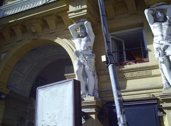 Keywords: Statua di uno dei 4palazzi a napoli.JPG it Piazza Nicola Amore o Piazza 4 Palazzi di Napoli Uno dei 4 Palazzi monumentali own TatsuoTabei 2011-01-27 Atlantes in Naples Piazza Nicola Amore Naples