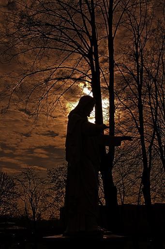 Keywords: statue abendstimmung trees jesus sky clouds sun silhouette mystical mood rest aesthetic
