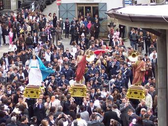 Keywords: Statue affrontata.jpg it L'incontro nella piazza d'Acquaro fra le tre statue di Maria Addolorata Gesù Cristo e san Giovanni al termine della corsa dell'affrontata own Vale maio 2009-04-12 38 33 19 22 N 16 11 24 95 E region IT Acquaro Processions in Calabria Statues of Christian saints in Italy |