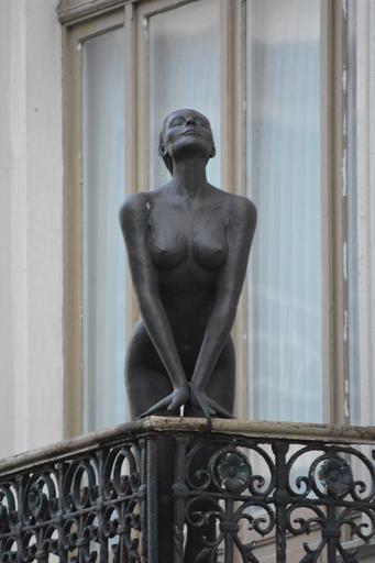 Keywords: statue brass woman nude breasts balcony art object belgium oostende