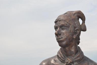 Keywords: statue bronze fig sculpture monument langenargen lake constance sky blue clouds