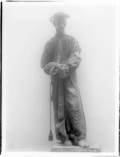 | Keywords: Statue, "Ecce Homo", in a corridor of the Convent of Domican Sisters at Mission San Jose de Guadalupe, 1904 (CHS-4014).jpg  en <br> Statue Ecce Homo in a corridor of the Convent of Domican Sisters at Mission San Jose de Guadalupe 1904 Photograph of the statue Ecce Homo in a corridor in the Convent of Domican Sisters at Mission San Jose de Guadalupe ca 1904 The statue is clothed in a tattered robe It's hands are bound from a rope about its neck A crown of thorns encircles its head It stands on a stone pedestal Call number CHS-4014 Photographer James George Wharton Filename CHS-4014 Coverage date 1904 Part of collection California Historical Society Collection 1860-1960 Format glass plate negatives Type images; physical objects Geographic subject city or populated place San Jose Repository name USC Libraries Special Collections Accession number 4014 Microfiche number 1-135-7 Archival file chs_Volume96/CHS-4014 tiff Part of subcollection Title Insurance and Trust and C C Pierce Photography Collection 1860-1960 Repository address Doheny Memorial Library Los Angeles CA 90089-0189 Geographic subject country USA Format aacr2 1 photograph glass photonegative b w ; 22 x 17 cm Rights Digitally reproduced by the USC Digital Library; From the California Historical Society Collection at the University of Southern California Subject adlf religious facilities Repository email specol usc edu Contributing entity California Historical Society Date created 1904 Publisher of the digital version University of Southern California Libraries Format aat photographs Geographic subject state California Legacy record ID chs-m16536 Access conditions Send requests to address or e-mail given Phone 213 821-2366; fax 213 740-2343 Geographic subject county Santa Clara Subject lcsh Missions Spanish Subject San Jose de Guadalupe Mission; Missions -- Mission San Jose de Guadalupe; Interiors; Mission San Jose 1904 date created James George Wharton http //digitallibrary usc edu/cdm/ref/collection/p15799coll65/id/16474 PD-old-70-1923 Images from USC Digital Library uploaded by Fæ California Historical Society Collection 1860-1960 Glass plate negatives Photographs by George Wharton James |