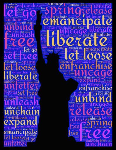 Keywords: statue of liberty liberty liberate liberation freedom independence symbol uncage release emancipation emancipate unbind loosen unleash red white blue patriotic democracy democratic symbolic