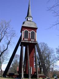 Keywords: stave church sweden wooden church church building architecture steeple sky sunny
