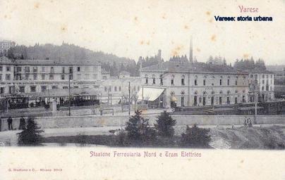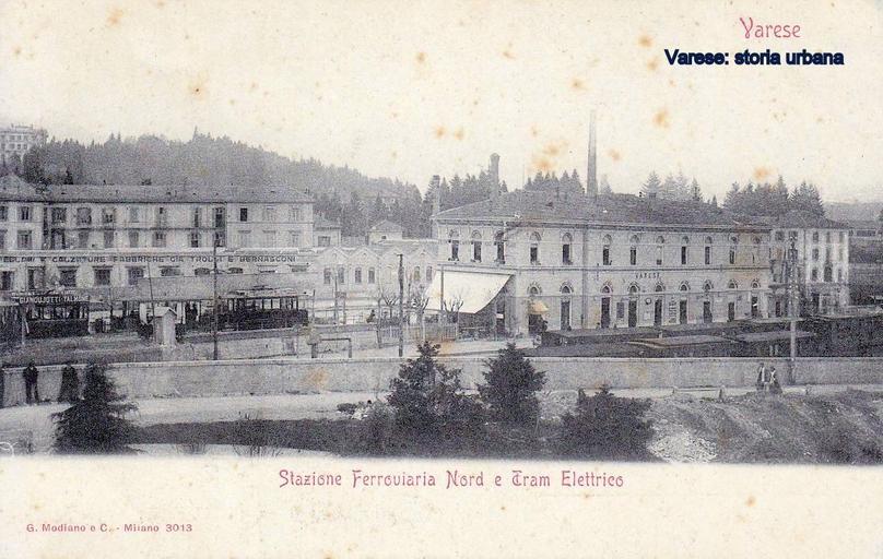 Keywords: varese tram outdoor La stazione delle Ferrovie Nord Milano (1885) e il capolinea della tranvia per la Prima Cappella (1895) con un convoglio fermo. Sul piazzale è visibile lo stabilimento del Calzaturificio di Varese e dietro la stazione le ciminiere dei Molini Marzoli Massari. La stazione delle Ferrovie Nord Milano (1885) e il capolinea della tranvia per la Prima Cappella (1895) con un convoglio fermo. Sul piazzale è visibile lo stabilimento del Calzaturificio di Varese e dietro la stazione le ciminiere dei Molini Marzoli Massari. |