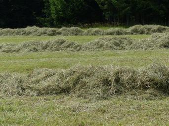 Keywords: steam grass rake grass meadow green nature swath rows together meet geschwadet crop harvest hay mowed grassland area luftrocknung forage rake tedding contact