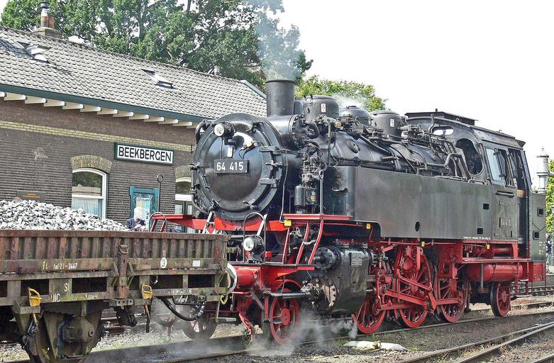 | Keywords: steam locomotive tank locomotive baureihe 64 operation of the museum apeldoorn-beekbergen netherlands vsm veluwsche stoomtrein maatschappij active operational under steam gondola cars einheitslok gravel cylinder steam smoke railway historically nostalgia steam water vapor oldtimer |