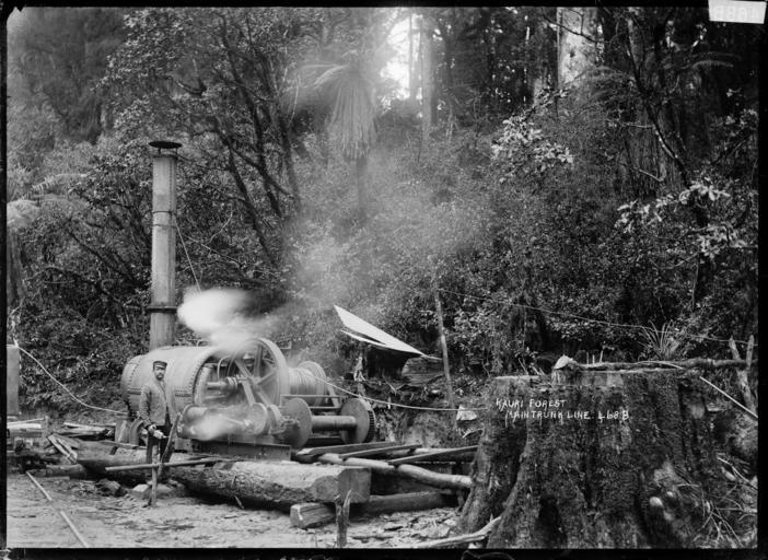 Keywords: blackandwhite monochrome surreal waterfall landscape photo border outdoor water black and white Steam log hauler in a kauri forest on the main trunk line, North Island. Shows a scene at an unidentified location in the bush. A worker stands by the steam powered winch. A kauri tree stump is in the right foreground. Inscriptions: Inscribed - Photographer's title on negative -bottom right: Kauri Forest Main Trunk Line [No.] 468 B. Quantity: 1 b&w original negative(s). Physical Description: Glass dry plate negative Steam log hauler, kauri forest, main trunk line, North Island. Price, William Archer, 1866-1948 :Collection of post card negatives. Ref: 1/2-001257-G. Alexander Turnbull Library, Wellington, New Zealand. natlib.govt.nz/records/22907646 Steam log hauler in a kauri forest on the main trunk line, North Island. Shows a scene at an unidentified location in the bush. A worker stands by the steam powered winch. A kauri tree stump is in the right foreground. Inscriptions: Inscribed - Photographer's title on negative -bottom right: Kauri Forest Main Trunk Line [No.] 468 B. Quantity: 1 b&w original negative(s). Physical Description: Glass dry plate negative Steam log hauler, kauri forest, main trunk line, North Island. Price, William Archer, 1866-1948 :Collection of post card negatives. Ref: 1/2-001257-G. Alexander Turnbull Library, Wellington, New Zealand. natlib.govt.nz/records/22907646 |