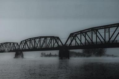 Keywords: steel bridge old ancient vintage antique grunge design aged river water structure famous foggy skeena river british columbia canada building construction landscape scenery