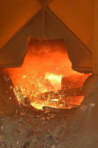 Keywords: steel mill worker foundry metal molten hot industry industrial heat manufacturing furnace production cast plant factory melting red hot spark fire