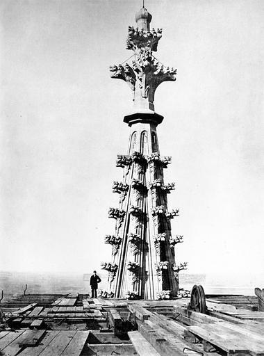 Keywords: steeple cologne cathedral great spire gothic ornaments sand stone ornament architecture construction scaffold 1881