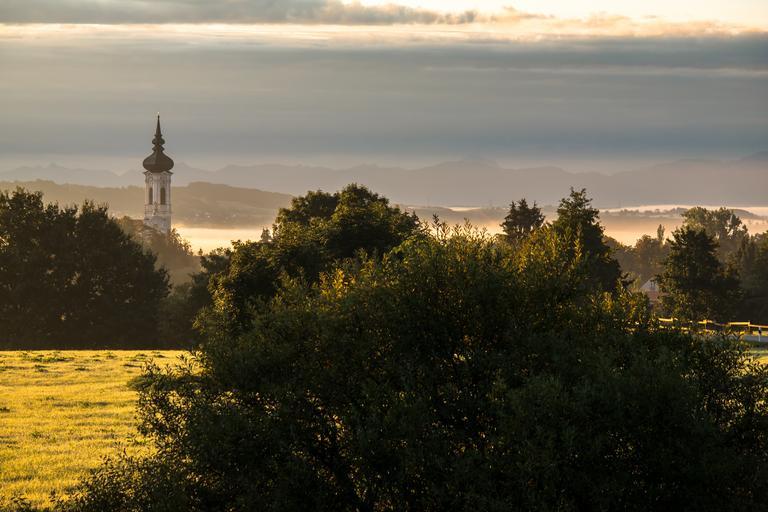Keywords: steeple morning fog fog bank clouds hazy haze alpine marie münster dießen diessen church germany ammersee bavaria morgenstimmung