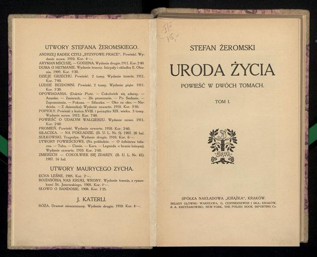 Keywords: Stefan Żeromski Uroda życia.jpg pl Strona tytułowa pierwszego tomu Urody życia wydanego w 1912 roku 1912 https //polona pl/item/2904404/4/ Stefan Żeromski other versions cc-zero Books by Stefan Żeromski Polish literature