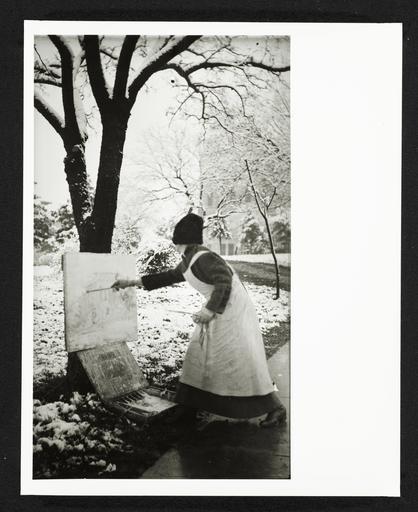 | Keywords: smithsonian institution smithsonianinstitution artist elmendorf tylor elmendorftylor snow paint box paintbox gray scale grayscale winter tree woman apron hat oil paint oilpaint can archives of american art archivesofamericanart photo border Description: Shows Elmendorf (Tylor) painting a landscape. Photographer unknown. Tylor, Stella Elmendorf Creator/Photographer: Unidentified photographer Medium: Black and white photographic print Dimensions: 26 cm x 20 cm Date: c. 1910 Persistent URL: www.aaa.si.edu/collections/images/detail/stella-elmendorf... Repository: Archives of American Art Accession number: aaa_miscphot_11150 Description: Shows Elmendorf (Tylor) painting a landscape. Photographer unknown. Tylor, Stella Elmendorf Creator/Photographer: Unidentified photographer Medium: Black and white photographic print Dimensions: 26 cm x 20 cm Date: c. 1910 Persistent URL: www.aaa.si.edu/collections/images/detail/stella-elmendorf... Repository: Archives of American Art Accession number: aaa_miscphot_11150 |