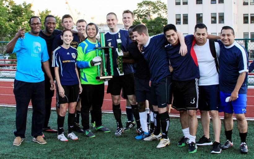 Keywords: Stennis soccer shuts down the competition 140910-N-NR045-0270.jpg en Sailors assigned to Nimitz-class aircraft carrier USS John C Stennis CVN 74 pose for a photo after winning the Captain's Cup soccer trophy Stennis is currently undergoing a Docking Planned Incremental Availability maintenance period at Puget Sound Naval Shipyard and Intermediate Maintenance Facility U S Navy Photo by Mass Communication Specialist 2nd Class Zulema Sotelo/ Released 2014-09-10 Petty Officer 2nd Class Zulema Sotelo https //www dvidshub net/image/1595940 140910-N-NR045-0270 2014-10-03 13 52 BREMERTON WA US PD-USGov-Military-Navy USS John C Stennis CVN-74 Images from DoD uploaded by Fæ |