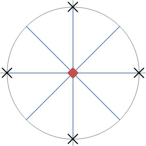 | Keywords: Stereogram tetragonal prism 4mm.png en Stereographic projection of a tetragonal prism 100 in the 4mm symmetry point group The mirror planes are represented in blue the rotation axes in red The face poles are marked by the black crosses The thin black ticks show the direction of the equivalent crystallographic axes a and b fr Projection stéréographique d'un prisme tétragonal 100 dans le groupe ponctuel de symétrie 4mm Les plans miroirs sont représentés en bleu les axes de rotation en rouge Les pôles des faces sont marqués par les croix noires Les trait fins noirs montrent la direction des axes cristallographiques équivalents a et b own Perditax 2011-06-05 Cc-zero Prisms geometry Stereographic projection in crystallography |